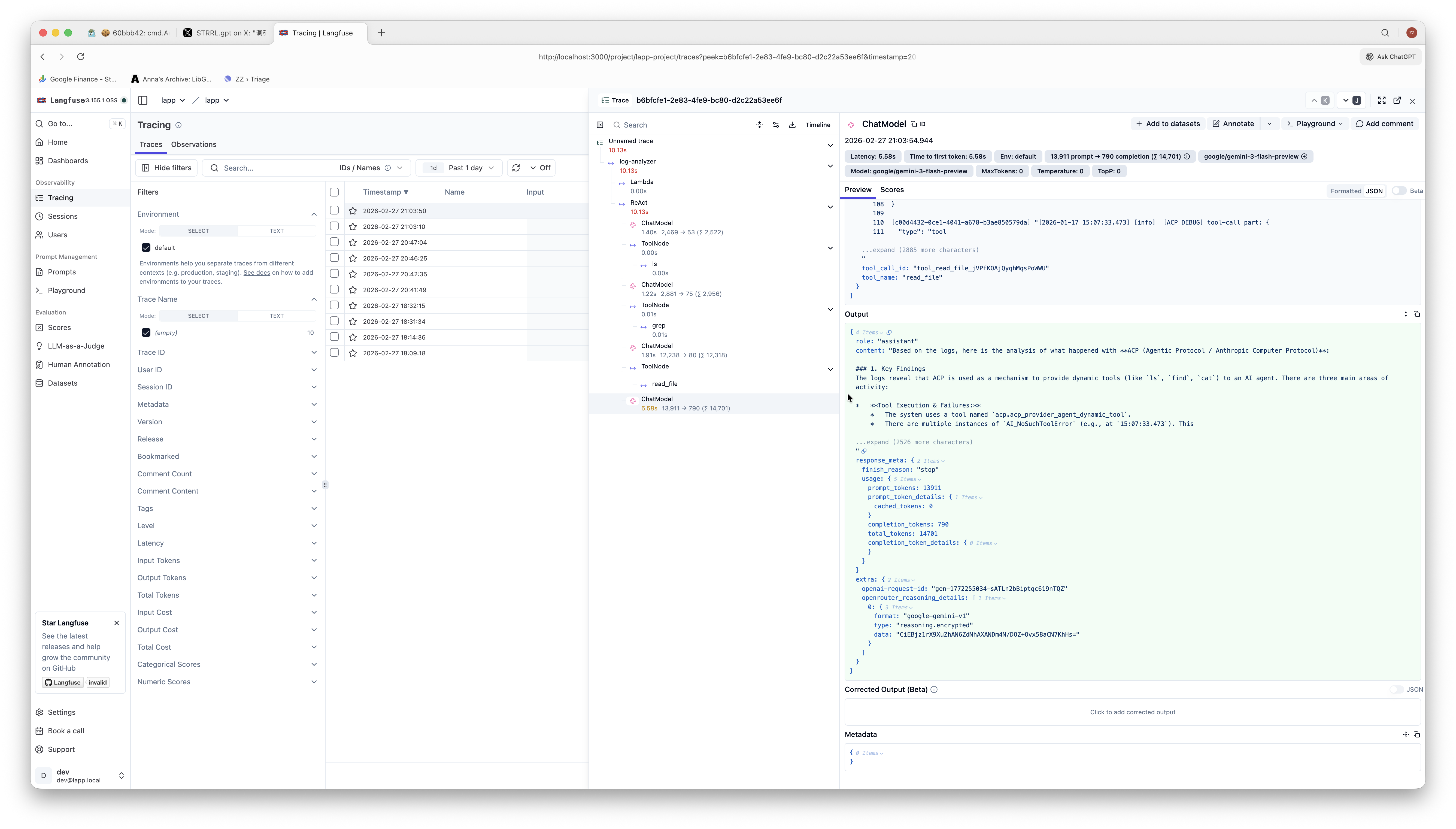 $ OTEL_TRACING_ENABLED=true go run ./cmd/lapp/ analyze ~/Library/Logs/haye/main.log "what happened about acp?"